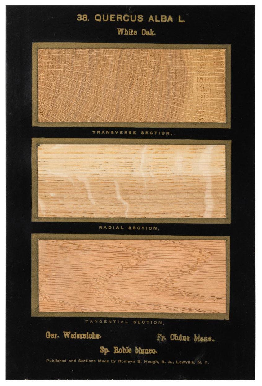 In retrospect, The American Woods reads like an elegy. Hough presumably didn’t know he was making a before-image of the extent of American forests at the end of the 19th century. The American chestnut, once a keystone canopy tree, would be functionally erased within decades by blight. With some of the trees it documents now exceedingly rare, the series stands for woods in two senses—both the material and the forests themselves that once felt infinite. The books have become the specimens.