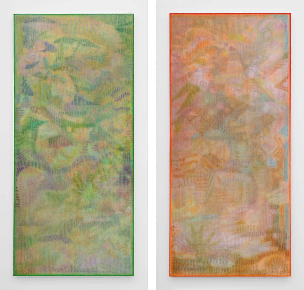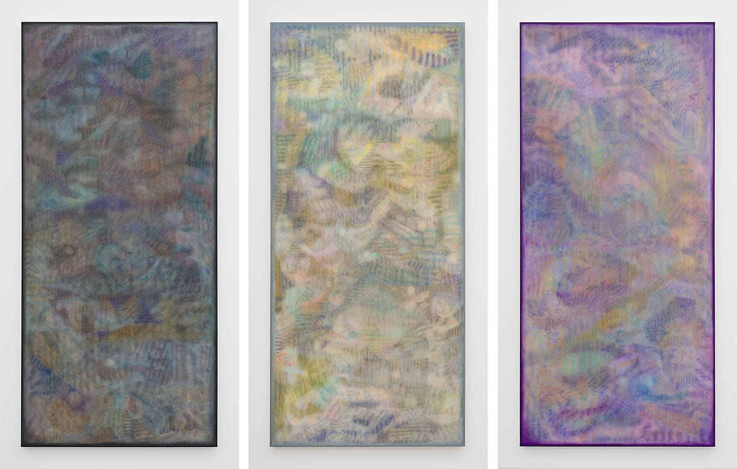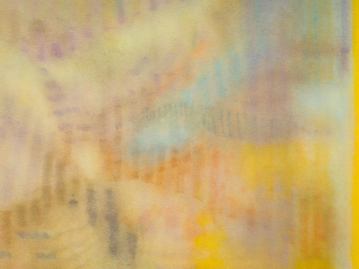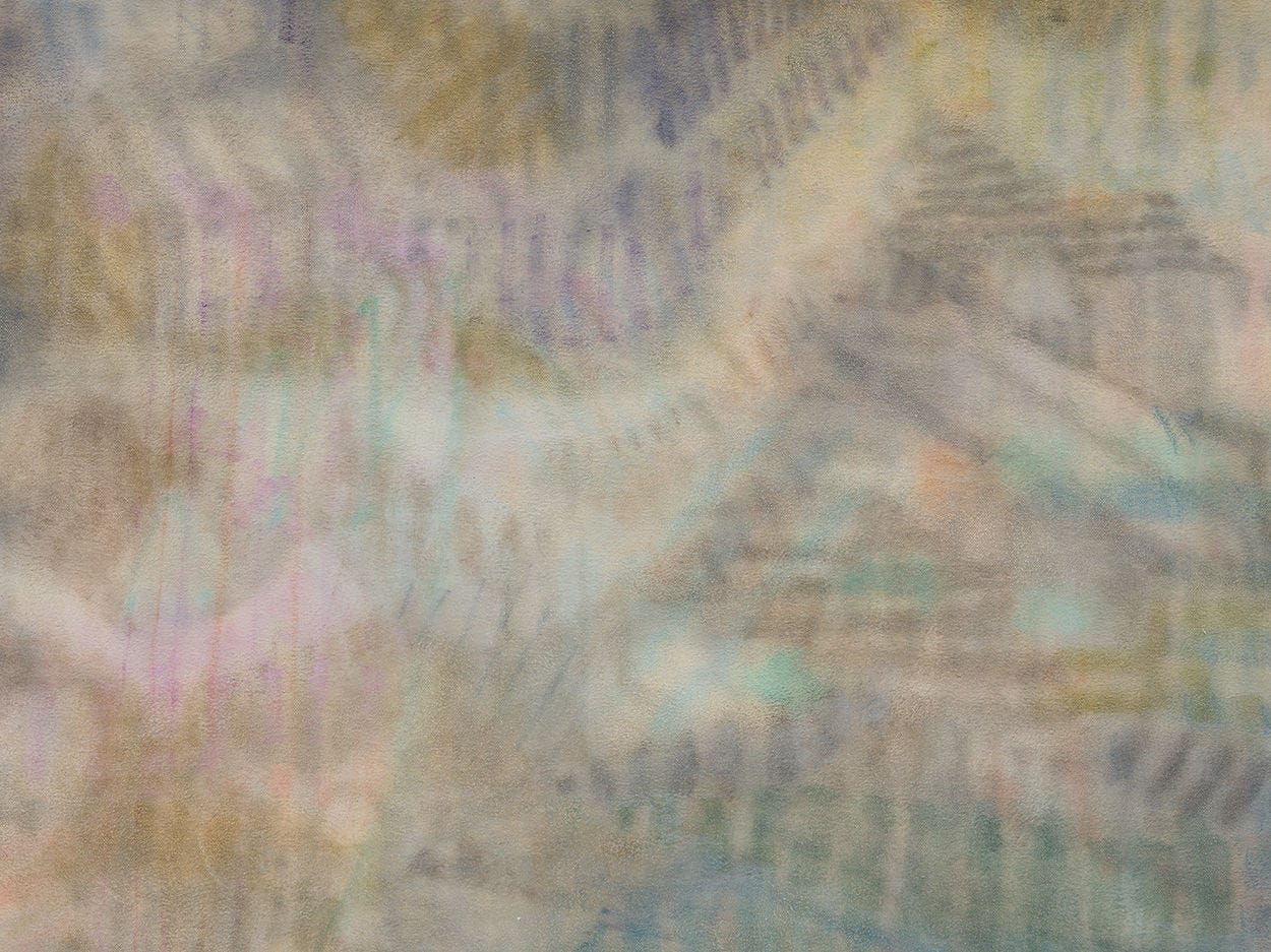 The exhibition1 is titled Ode in Nine, and it is explained to partially reference the Norse god Odin, who hung from the cosmic World Tree for nine days and nine nights to gain wisdom. I think these nine door-shaped paintings depict new a kind of mythology, beyond words. The title also references Beethoven’s Ninth Symphony, which culminates in the famous Ode to Joy. Likewise, these paintings are resonantly, achingly joyful.