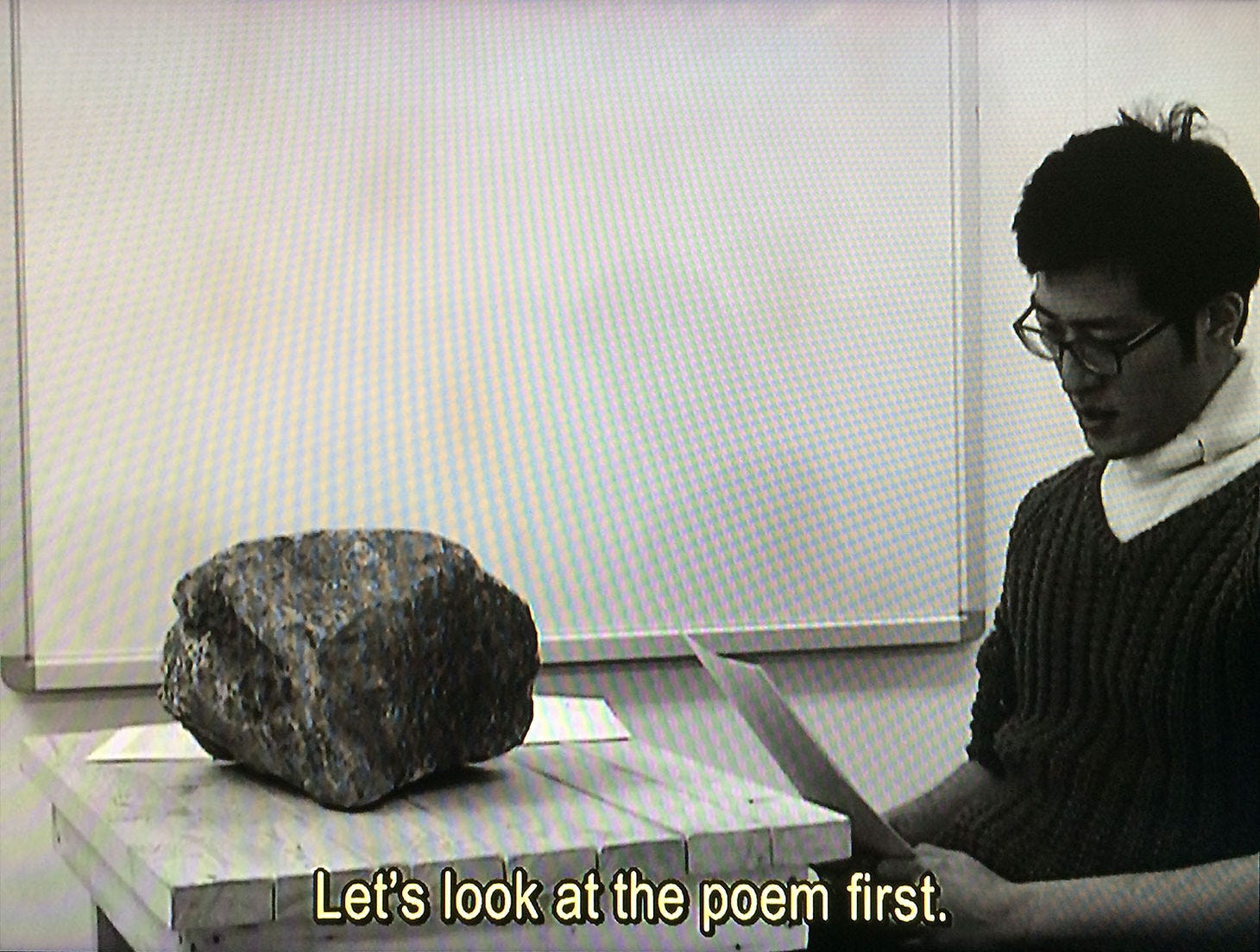This last point is fittingly demonstrated in the Cullen Hall of Gems and Minerals at the Houston Museum of Natural Science. All minerals and fossils pictured are in the museum's permanent collection and were photographed there. The final image is a still from a video by the Korean artist Kim Beom, in which he reads poetry to a rock.